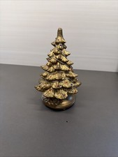 Vintage Ceramic Christmas Tree Gold Tone With Music Box *read Description Ge4