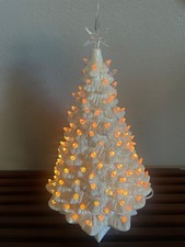 Vintage Ceramic Christmas Tree Lighted Pearl White Iridescent 19" & Music Box!