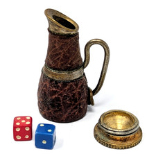Vtg Antique Brass Flagon Pitcher Miniature Dice Holder Charm 1-1/4" | RARE!