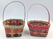 Vintage 2 Sm. Easter Baskets Colorful Woven Wicker Mid Century Japan 4X6 in. (B)