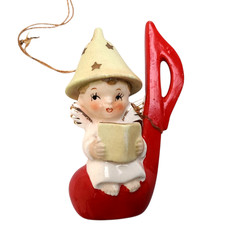 RARE Vintage Angel on Musical Note Ceramic Ornament Singing Cute Mid-Century