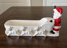 Vtg Christmas Santa Claus Reindeer Sleigh Cracker Dish Mid Century J.S.N.Y. 9.5”