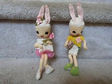 2 VTG Mid Century Easter Bunny Figures Poseable Elf Pixie Shelf Sitters JAPAN 8"