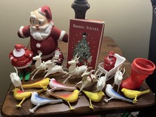 50 VTG Mid Century Christmas Ornaments Glass Felt Wood Santa's L@@kie Memories