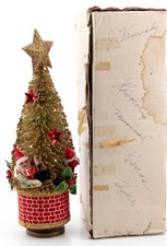 Vintage Jewelbrite Diorama Christmas Ornament Bottle Brush Tree Mid Century