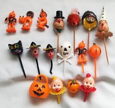 17 Mid-Century HALLOWEEN Cupcake, CAKE TOPPERS Hong Kong ~ Witches, Scarecrow ++