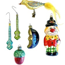 Vintage Glass Christmas Ornaments Mixed Lot of 17 Mid-Century Europe & USA