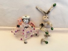 Vintage Set Two Mid Century Pipe Cleaner Christmas Tree Ornaments Angel