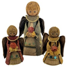 3 Vintage Burlap Angels Tree Topper & Ornaments Set Mid-Century Modern