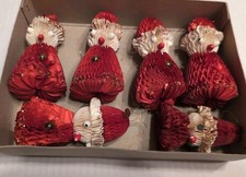 VINTAGE MID CENTURY HONEYCOMB CHRISTMAS SANTA ORNAMENTS IN BOX-6