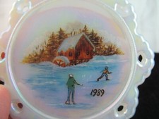 FENTON HANDPAINTED SNOWFLAKE ORNAMENT 1989 WINTER ICE SKATING SCENE WATERWHEEL