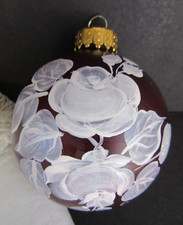 Hand-Painted Christmas Floral Roses Glass Ornament Signed Carol Griffiths 2009