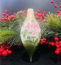 vintage hand-painted Fenton? tear drop Art Glass christmas ornament