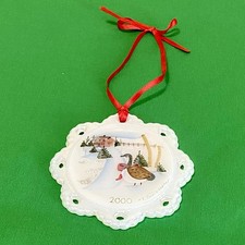 Fenton Hand Painted Christmas Goose Art Glass Snowflake Ornament Signed 2000