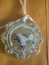 Fenton Glass Iridescent Snowflake Christmas 1996 Ornament Dove Hand Painted Art