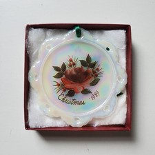 Vintage Fenton 1989 Christmas Ornament Hand Painted With Box Sticker Stamped