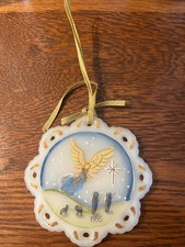 Fenton Hand-Painted Angel Nativity Ornament Signed 1995 Art Glass Scalloped Edge