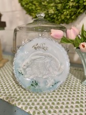 Vintage 7" MILK GLASS Embossed Easter Bunny Rabbit with Shamrock Plate Fenton?