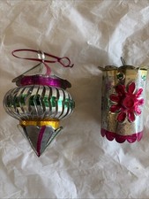 Vintage Mexican Hand Hammered Tin Toy Spinning Top & Unique Christmas Ornaments