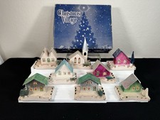 8PC Vintage Dolly Toy Co Putz Christmas Village Snow Houses w/ BOX Church Chalet
