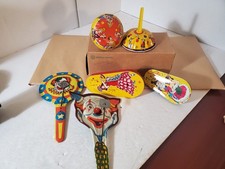 Vintage US Metal Toy Mfg Co New York Tin Metal Noisemakers Clown USA 6 Total