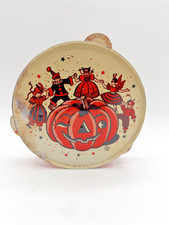 JACK-O-LANTERN Vintage Tin HALLOWEEN TAMBOURINE NOISEMAKER U.S. METAL TOY Mfg Co