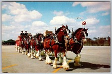 Vtg Postcard Budweiser Clydesdale 8-horse Team Tampa, FL 1970s