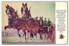 c1910's Six Horse Hitches Of Clydesdale Anheuser Busch Budweiser Beer Postcard