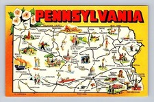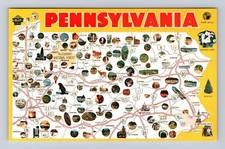 Vintage Pennsylvania Illustrated Road Map Postcard with Landmarks