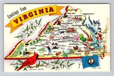 VA- Virginia, General Map Greetings, Landmarks, Antique, Vintage Postcard