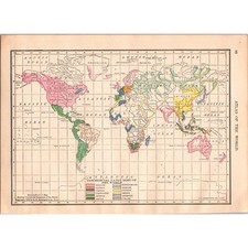 Vintage Color-Coded Map of Commercial Langu Ages of the World 1910 Map SL1