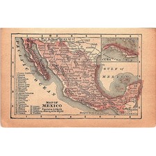 Antique 1889 Map of Mexico 1889 Pocket Map Engraving SAG4-H3