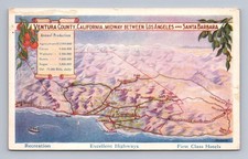 Ventura County ~ Antique California Map Advertising Ojai Simi Saticoy ~1920s