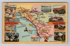 CA-California, Southern California Road Map Greetings, Antique Vintage Postcard