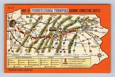 Pennsylvania Postcard Turnpike Man-Made Wonders Highway Map 1940 Vintage Antique