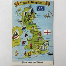 United Kingdom Map Vintage Postcard c1950’s Picturesque Historic Old UK England
