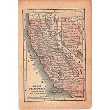 Antique 1889 Map of California 1889 Pocket Map Engraving SAG4-H4