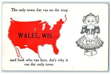 1913 The Only Town Dat Map Wales Wisconsin WI Dutch Kid Vintage Antique Postcard