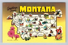 MT- Montana, General Map Landmark Greetings, Antique, Vintage Souvenir Postcard
