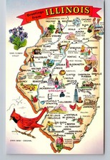 IL-Illinois, General Greeting, State Map, Landmarks, Antique Vintage Postcard