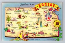 KS-Kansas, General Map Greetings, Antique Vintage Souvenir Postcard