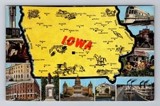 IA-Iowa, Landmarks Map, Antique, Vintage Souvenir Postcard