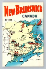 New Brunswick-Canada, Map And Landmarks Of Province, Antique, Vintage Postcard