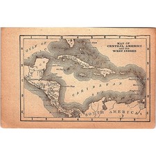 Antique 1889 Map of Central America 1889 Pocket Map Engraving SAG4-H3