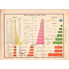 Vintage Color-Coded Chart of River Systems of the World 1910 Map SL1