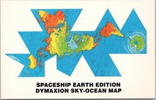 Vintage DYMAXION SKY-OCEAN MAP Postcard "SPACESHIP EARTH WORLD MAP" Ad 1982