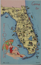 FLORIDA COLORFUL TOURIST MAP VINTAGE LINEN BY CURT TEICH ROADSIDE AMERICA