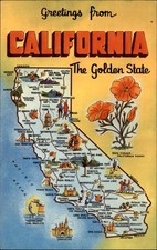 CA- California, General Map Greetings, Antique, Vintage Souvenir Postcard