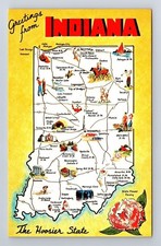 IN-Indiana, General State Road Map Greetings, Antique Vintage Souvenir Postcard