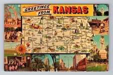 KS-Kansas, General Map Greetings, Antique, Vintage Souvenir Postcard